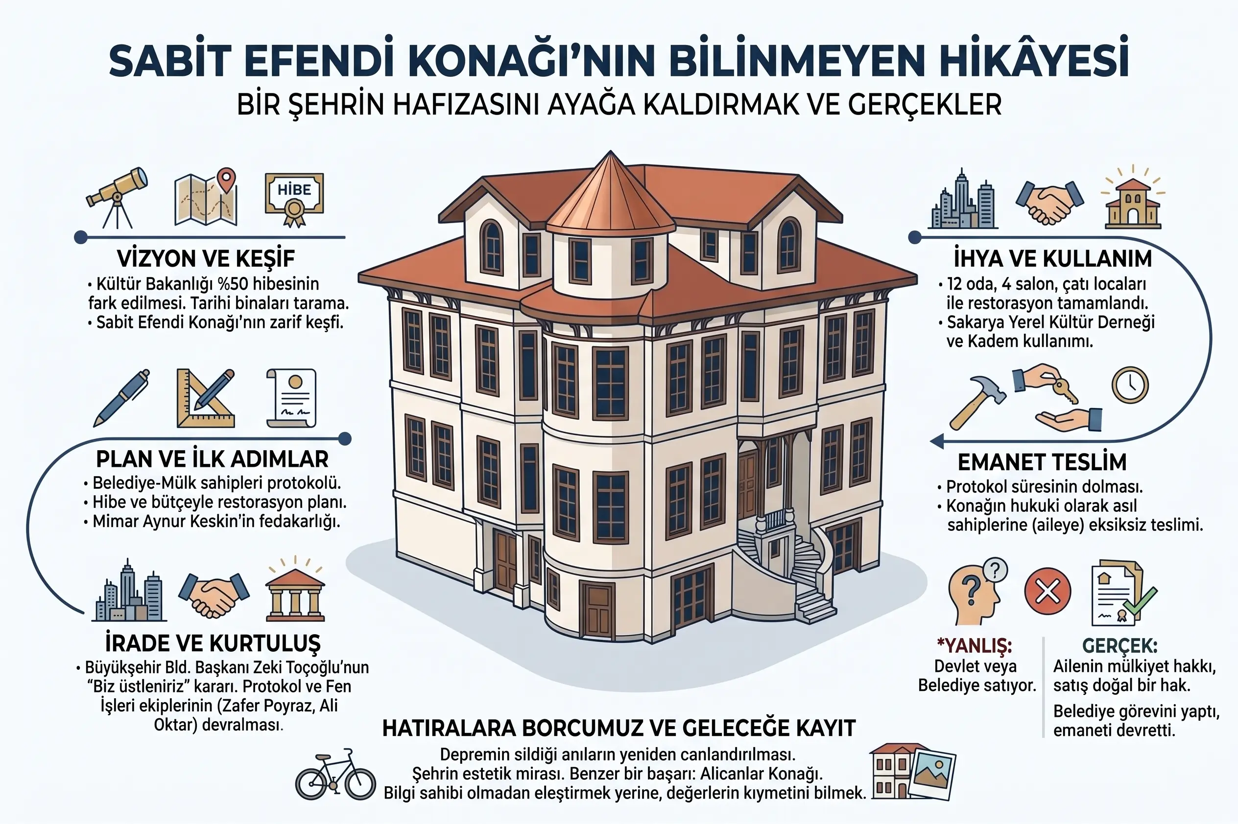 Gelin, bu konağın küllerinden doğuş hikâyesini ve bugünkü durumun perde arkasını, bizzat o sürecin içinde ter dökmüş biri olarak tarihe not düşelim.