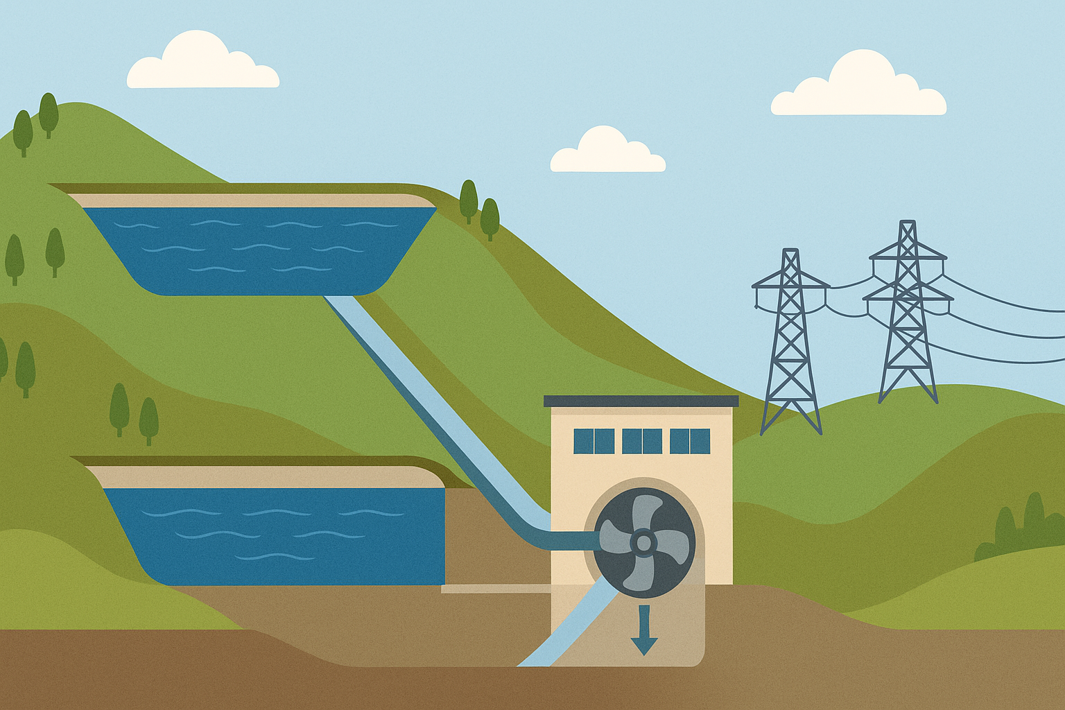 PDHES, iki farklı su rezervuarı (üst ve alt) arasında çalışan bir hidroelektrik santral türüdür. Sistem temel olarak elektrik enerjisini potansiyel enerjiye çevirerek depolar, sonra ihtiyaç olduğunda bunu tekrar elektrik enerjisine dönüştürür.