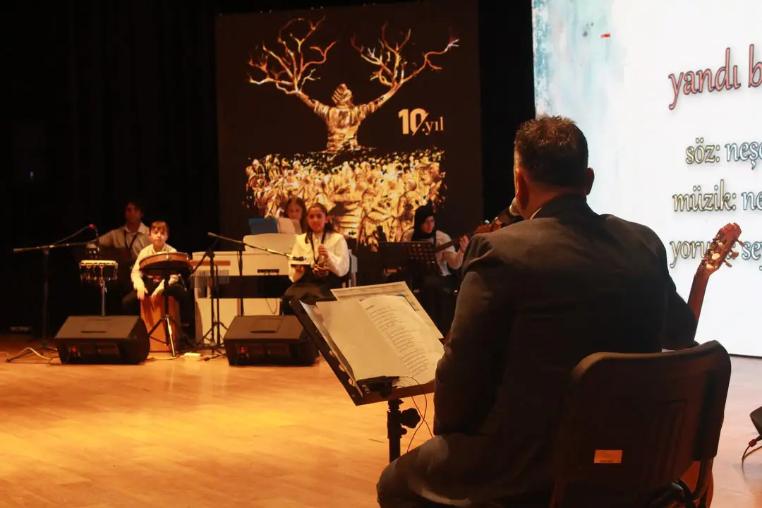 Sahnedekilerin büyük çoğunluğu lise öğrencisiydi. Genç, umut vadeden, pırıl pırıl çocuklarımız… Birbiri ardına sayfalar dolusu şiiri ezbere okudular. Üstelik sadece okumadılar; yaşadılar ve hissettirdiler. Toplu koreografilerle şiirleri görsel bir anlatıma dönüştüren gençler, canlı müzik eşliğinde mısraları salonda yankılattı. Duygu ile disiplin, estetik ile emek aynı sahnede buluştu.